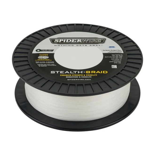 SpiderWire Stealth® Translucent is uniquely processed to provide high visibility to anglers above water, and less visibility to fish below. Made from Dyneema®, The World’s Strongest Fiber, the natural white fiber combined with a clear coating reduces the effects of an opaque fiber, resulting in translucency. Constructed to provide ultimate strength with the thinnest diameter for smooth and quiet performance, the no-stretch properties of Dyneema PE fibers provide incredible sensitivity to instantly detect bites and structure.